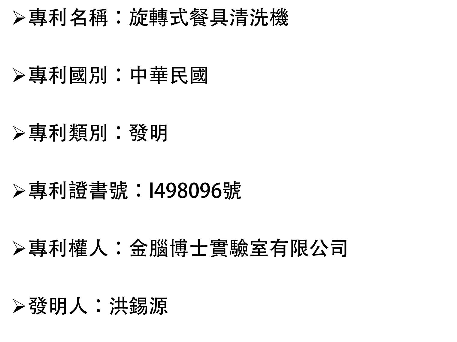 本公司的洗碗機系列技術的發明,已獲得多項發明專利。